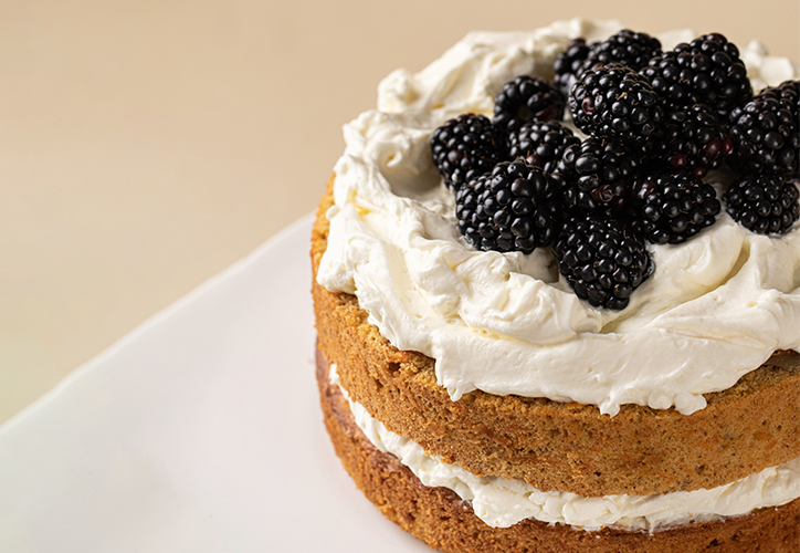 Рецепт на 10 кусочков торта. Для коржей понадобится: яйца – 4 шт морковь – 300 г апельсин – 1 шт коричневый сахар – 400 г имбирь - ½ ч.л. корица – 1 ч.л. мука – 340 г растительное масло – 250 мл орехи грецкие – 80 г мускатный орех – 1 ч.л. разрыхлитель – 2-3 ч.л. Для крема понадобится: сахарная пудра – 80 г творожный сыр – 400 г сливки 30-35% жирности – 400 мл цедра лимона соленая карамель – 100 г ягоды для украшения Приготовление: 1. В миске взбить яйца с сахаром до увеличения массы в объеме в три раза, добавить цедру одного апельсина, влить масло. Взбивать еще 2-3 минуты. 2. В отдельную миску просеять все сухие ингредиенты: муку, корицу, мускатный орех, имбирь, разрыхлитель. Хорошенько перемешать. 3. Сухие ингредиенты всыпать к жидким. Перемешать тесто до однородности. 4. Далее добавить натертую морковь и порубленные орехи. Сырую морковь натереть на крупной терке, а орехи заранее обжарить на сковороде и порубить ножом. Еще раз все хорошенько перемешать. 5. Разогреть духовку до 170 градусов. На дно разъемной формы диметром 20-22 см выстелить пергамент. Смазываем бока и пергамент сливочным маслом. Вылить половину теста. Корж выпекается 40-50 минут, готовность проверяется деревянной палочкой, вставленной в середину,она должна выходить сухой и чистой. Также выпекаем второй корж. 6. Готовые коржи вынуть из формы на решетку, остудить до комнатной температуры, обернуть в пищевую пленку и отправить в холодильник на ночь. 7. Для крема в миске взбиваем холодный творожный сыр с сахарной пудрой. В другой миске взбиваем холодные жирные сливки до мягких пиков. Соединяем все вместе, добавляем цедру лимона и еще раз взбиваем. Сборка торта: 1. Коржи выровнять, срезав выпуклую часть, и разрезать каждый корж на два тонких ножом-пилкой. 2. На подложку или сервировочное блюдо отсадить немного крема. Выложить первый корж, а на него 1/4 крема, разровнять. Повторить процедуру с оставшимися коржами. Верхушку и бока смазать оставшимся кремом и отправить в холодильник на ночь. Для того, чтобы тортик был ровный, его можно обернуть ацетатной пленкой и закрепить кольцом. 3. На верхушку готового торта потихоньку вылить слегка застывшую карамель (если карамель сильно густая, разогреть ее на водяной бане). 4. Украшаем торт по желанию, идеально подойдут осенние фрукты и ягоды.