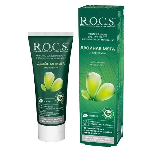 Паста зубная Rocs двойная мята, 74 мл, Россия