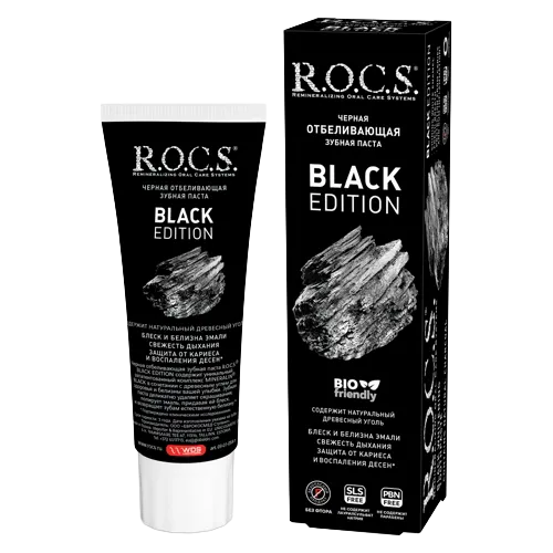 Паста зубная ROCS black edition отбел с черным углем 74г, Россия