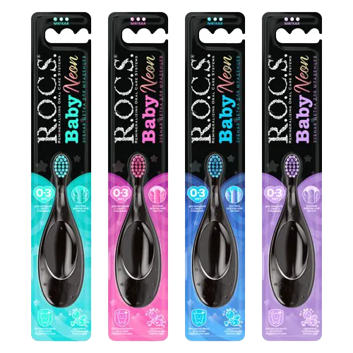 Щетка зубная R.O.C.S. Baby Neon для детей 0-3 мягкая, 1 шт, Россия