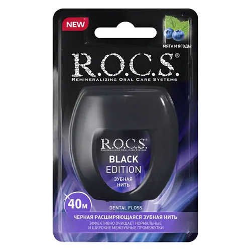 Нить зубная Rocs Black edition расширяющаяся 40м, Россия